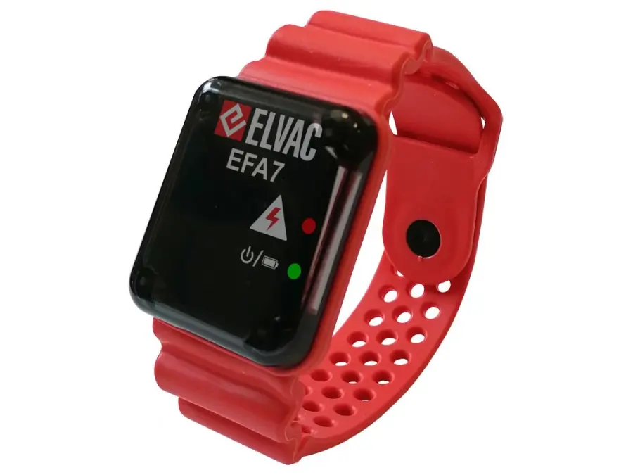 Detektor elektrického pole s akustickou, vizuální a vibrační signalizací. Konfigurace přes Bluetooth, bezdrátové nabíjení (Qi). Verze pro nošení na zápěstí pod oděvem.