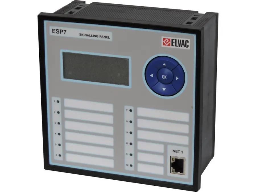 Signalizační panel s textovým LCD displejem a LED diodami a vyměnitelnými popiskami pro signalizaci stavů RTU jednotek. Napájení 10-60V DC. Komunikace s RTU přes Ethernet (2xEthernet konektor-SWITCH).