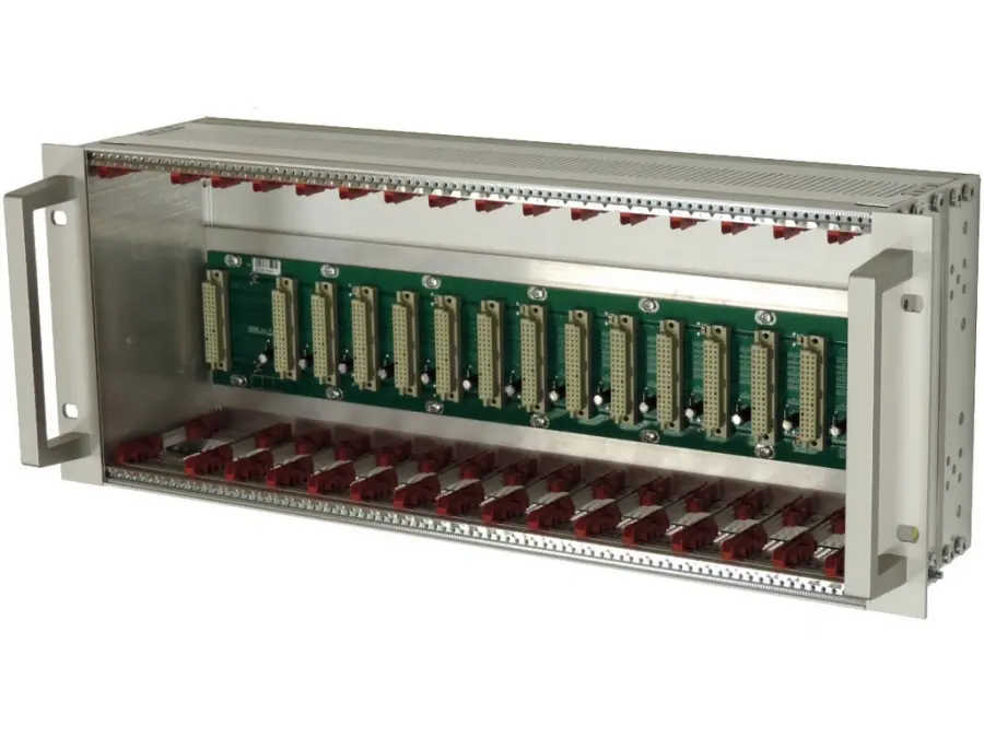 Šasi pro 16-slotovou jednotku s montáží do 19" zástavby, včetně sběrnice s 16 sloty, hliníková konstrukce.