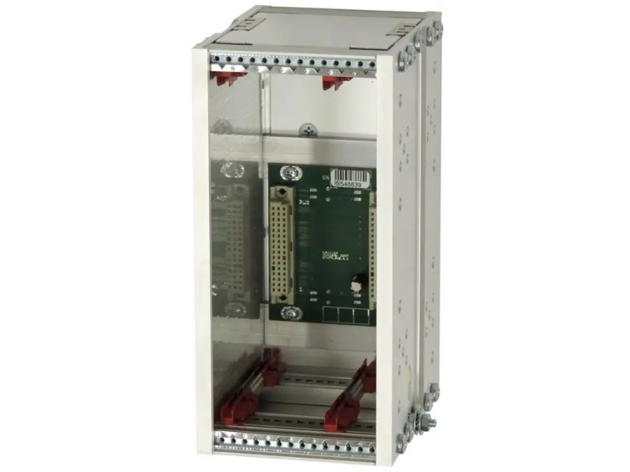 Šasi pro 2-slotovou jednotku s montáží na DIN lištu včetně sběrnice s 2 sloty. Tato verze vychází z hliníkové řady RTU šasí. První pozice je širší a určená pro osazení napájecí kartou, což umožňuje použít jakékoli napájecí napětí.